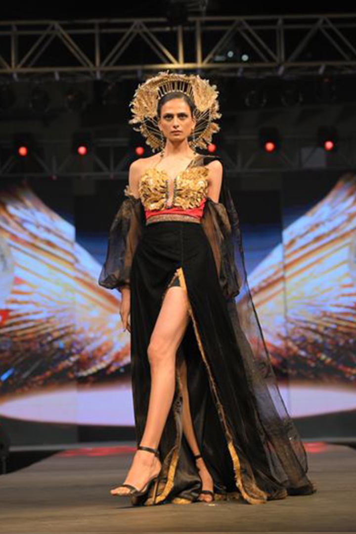 Design : An avant-garde cut silt gown, perfect for the red carpet, exuding bold elegance in a grand way