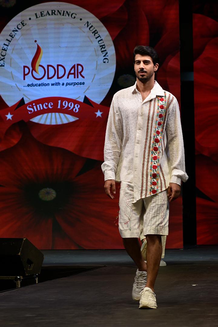 Design : Men's hand embellished loose fit shirt paired with shorts.