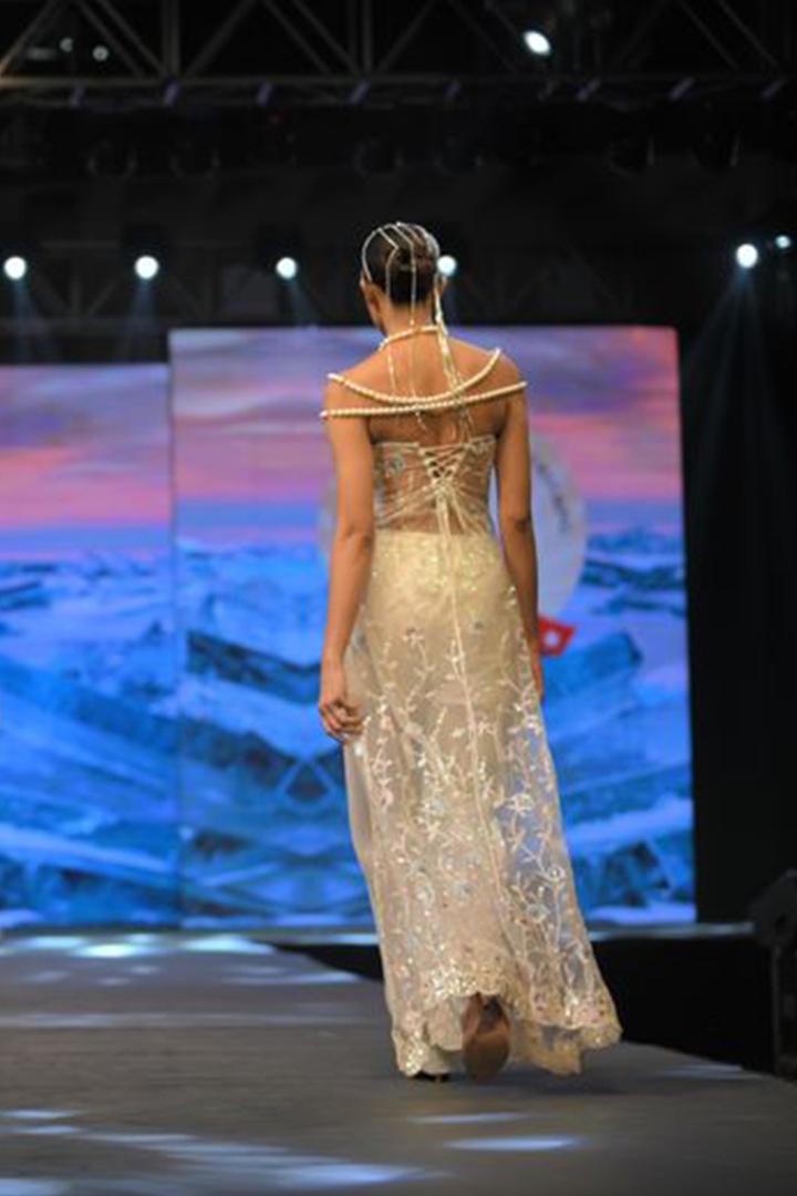 Styling : style it with layered pearl neck piece